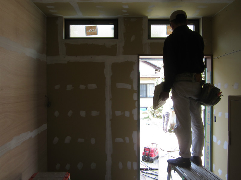 以前から工事をしておりました廊下等の場所は、クロス職人さんの作業が始まっていました。